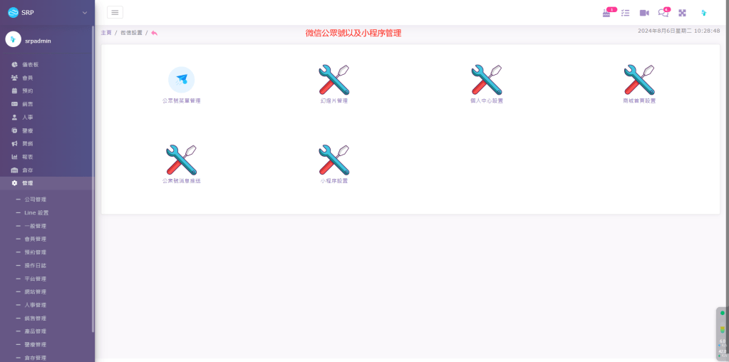 - 功能概述:微信作為中國最大的社交平臺之一,BeautySRP系統中的微信設置工具幫助門店利用微信公眾號和小程式進行客戶互動和行銷活動。