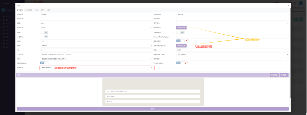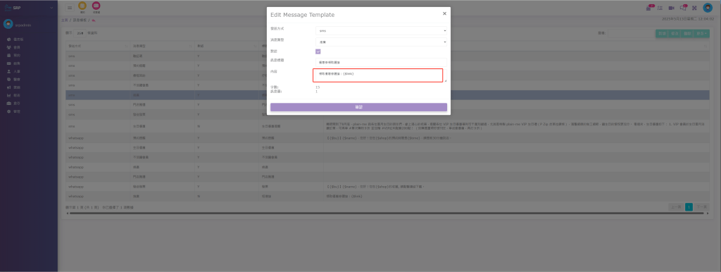 Step 1 : 登入SRP商戶後台 → 選擇「管理」→ 進入「一般管理」→ 點擊「訊息模板」,然後設置一個模塊